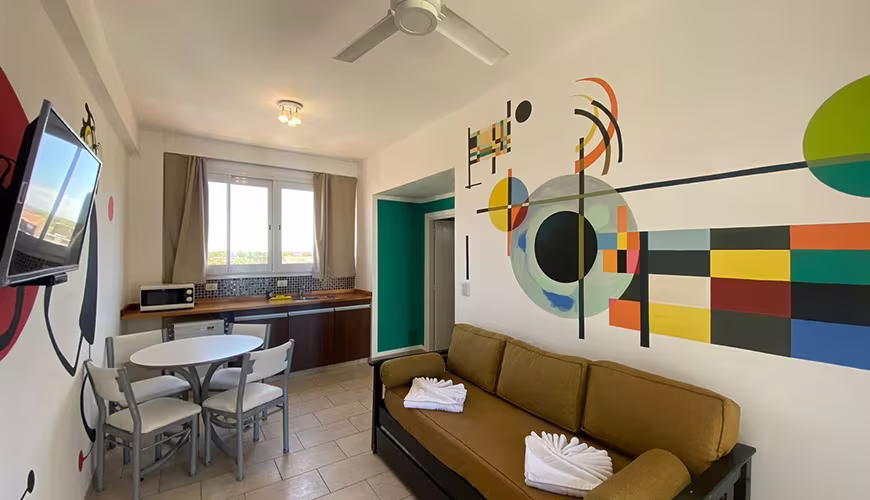 Disfrute de las comodidades del hotel en un departamento familiar de 2 ambientes equipado para su comodidad.